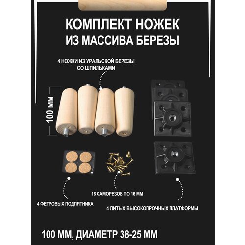 Мебельные деревянные ножки 4 шт, 10 см, берёза, WOODGRI черная опора