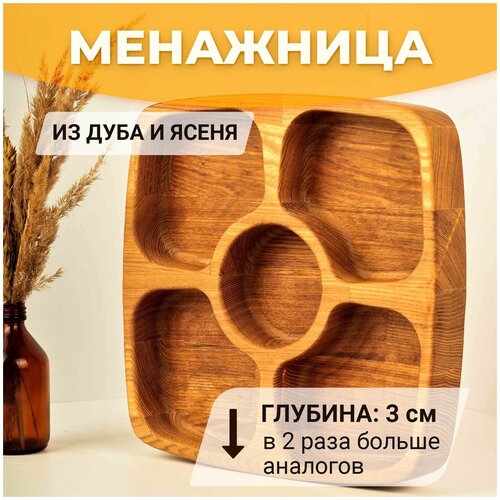 WOODMEBECO Менажница глубокая из натурального дерева для сервировки стола "Галактика". Сырная тарелка - доска в подарок под закуски WoodMebEco