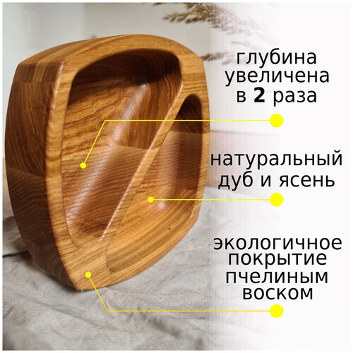 Набор деревянных тарелок из дуба. Глубокие миски для закусок, салатница, сервировочное блюдо
