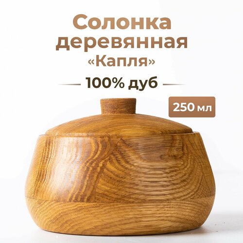 Средняя деревянная солонка "Капля" с крышкой из дуба, емкость для специй