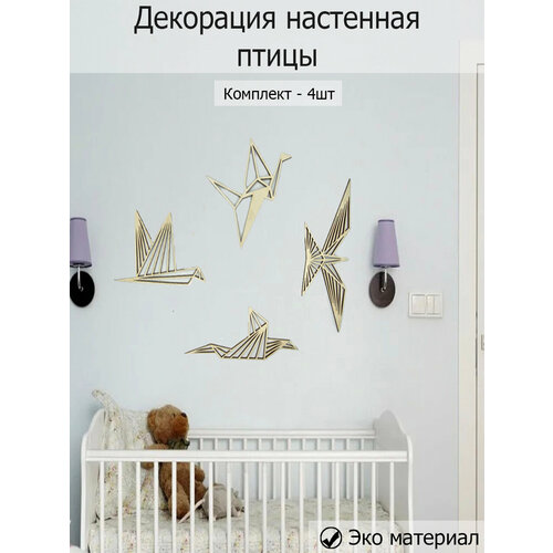 Декорация настенная стая птиц 4шт, панно из дерева, декор на стену