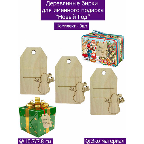 Новогодние бирки из дерева для подарков и творчества, снеговик