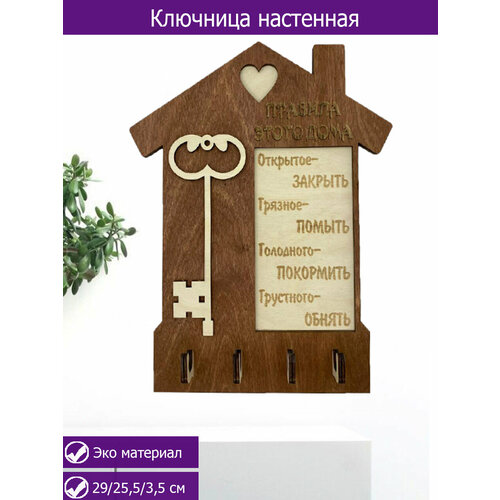 Ключница настенная деревянная "Правила этого дома"
