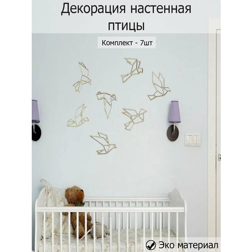 Декорация настенная стая птиц 7шт, панно из дерева, декор на стену