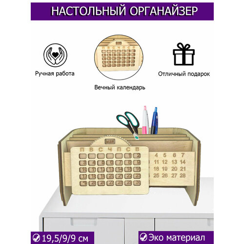 Деревянный календарь-карандашница "Офисный органайзер"