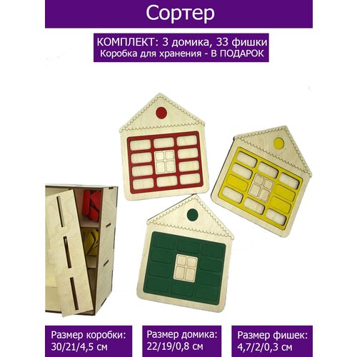 Сортер деревянный развивающий Монтессори домик, Моторика памяти, логики, крупные детали