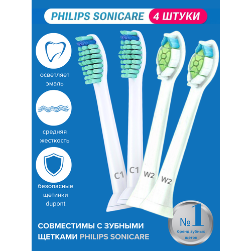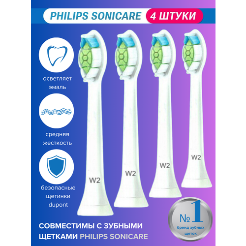Насадки для зубных щеток Philips Sonicare совместимые W2, 4шт
