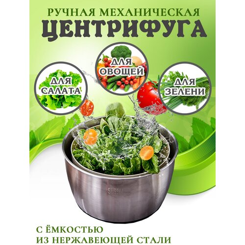 Центрифуга для зелени Wow Kitchen, сушилка салата, сушка овощей ручная металлическая