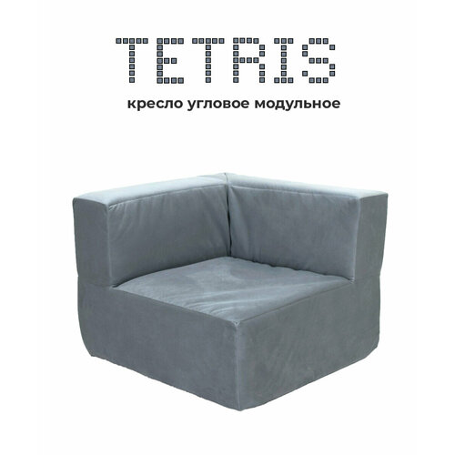 Кресло диван угловое модульное тетрис 40 бескаркасный для отдыха на балкон террасу веранду лоджию в игровую в холл в коридор поролон велюр Серый