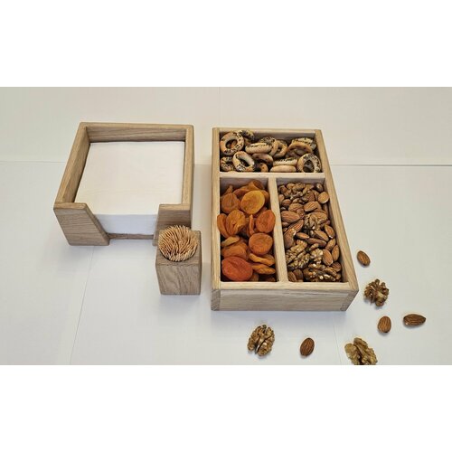 Набор для стола из массива дуба (менажница, салфетница, подставка для зубочисток)