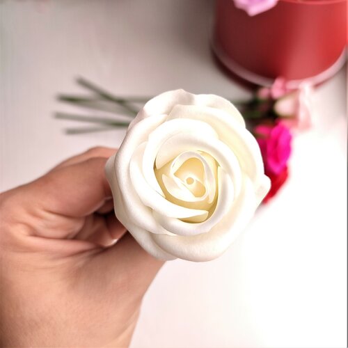 Нежная белая роза из мыльной пены для букетов и творчества 30 см