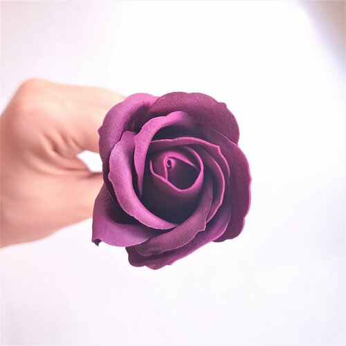 Нежная темно-фиолетовая роза из мыльной пены для букетов и творчества 30 см