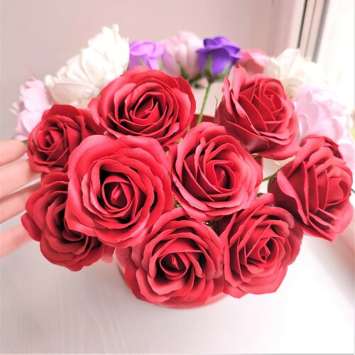 9 штук нежная многослойная бордовая роза из мыльной пены для букетов и творчества 30 см