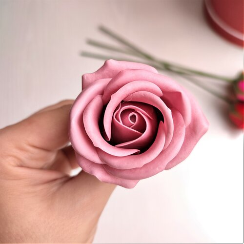 Нежно-розовая роза из мыльной пены для букетов и творчества 30 см