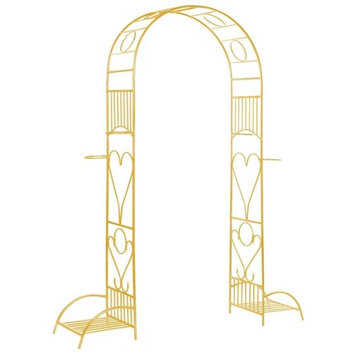 Арка садовая металлическая для растений (для сада) Лето разборная с чашами для горшков желтая 240х170х40см.