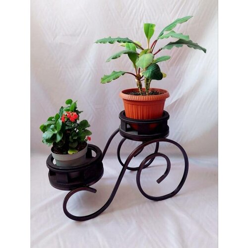 Подставка кованая для цветов на 2 горшка "Кружево -К48",23х50х24см, чашка д19см.