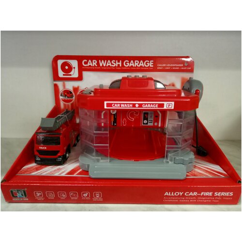 Гараж детский Пожарная часть игровой набор автомойка с пожарной машиной с водной пушкой свет звук пар