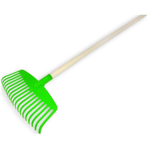 Грабли веерные, детские, пластиковые, деревянный черенок, цвет зеленый, длина-78см.