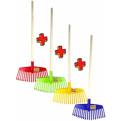 Грабли веерные детские пластиковые деревянный черенок набор из 4х штук длина-78см