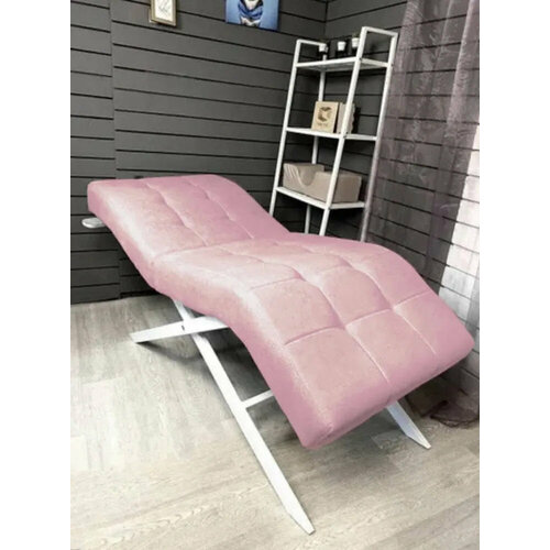 Анатомическая кушетка Квадро, в салон красоты, в студию, для наращивания ресниц, для перманентного макияжа, Велюр цвет Розовый