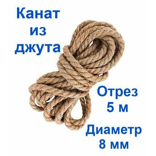 Канат джутовый, высший сорт 8 мм 5 метров, Джут