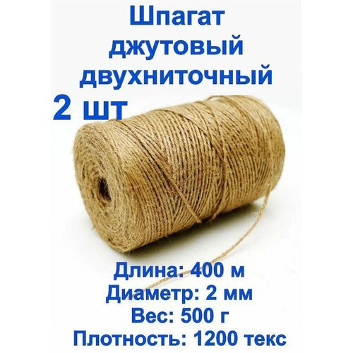 Шпагат джутовый 2 мм 400м - 2 шт/ Веревка джутовая/Упаковочная веревка/ Для рукоделия