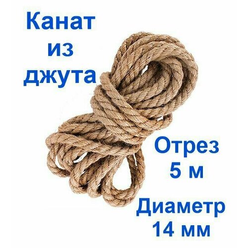 Канат джутовый, высший сорт 14 мм 5 метров, джут, веревка, межвенцовый утеплитель.