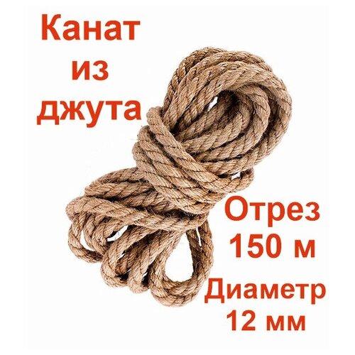 Канат джутовый, высший сорт 12 мм 150 метров, джут, веревка, межвенцовый утеплитель.