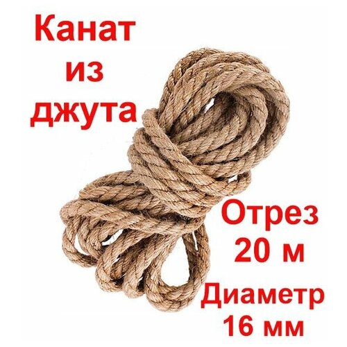 Канат джутовый, высший сорт 16 мм 25 метров, Джут