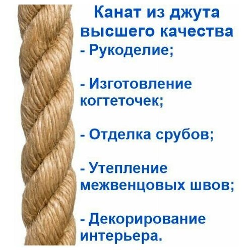 Канат джутовый, высший сорт 16 мм 10 метров, джут, веревка, межвенцовый утеплитель.