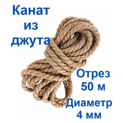 Канат джутовый, высший сорт 4 мм 50 метров, Джут