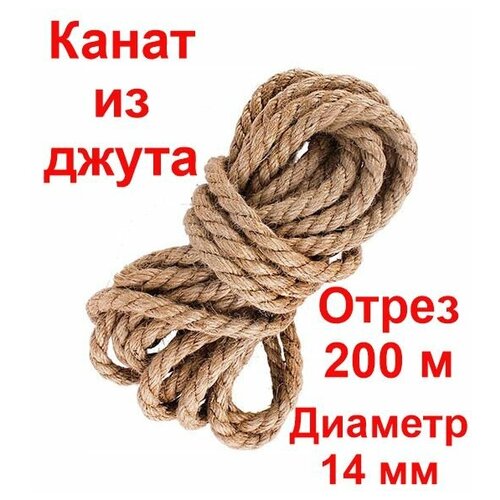 Канат джутовый, высший сорт 14 мм 200 метров, джут, веревка, межвенцовый утеплитель.