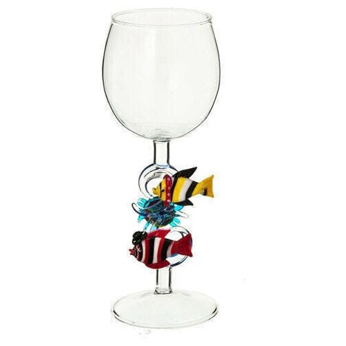 Бокал для вина из стекла ручной работы. "Рыбки с черепашкой"