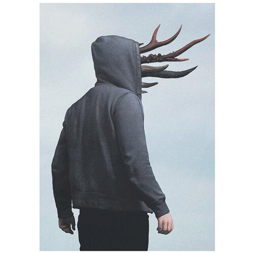 Интерьерный постер на стену картина для интерьера в подарок плакат "Horns" размера 60х90 см 600*900 мм в черной раме для декора