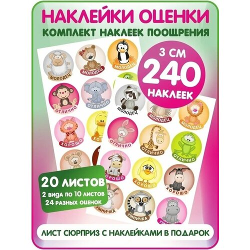 Поощрительные наклейки оценки для школы, детского сада