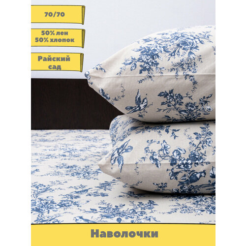 Наволочки 70/70 "Райский сад" синий 2 шт. лен