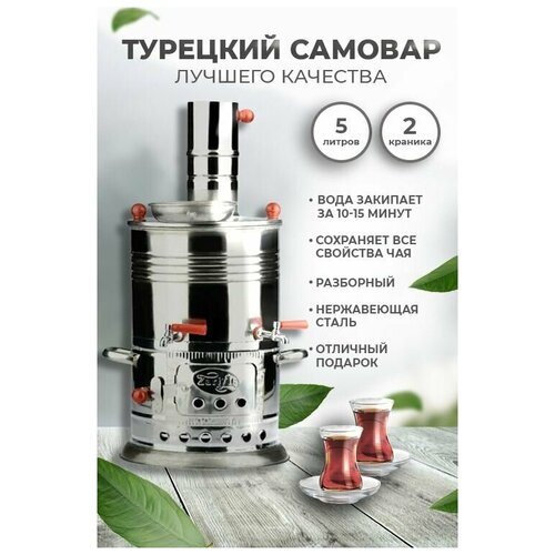 Самовар Турецкий два крана 5 литров Zarifis S-105, нержавеющая сталь