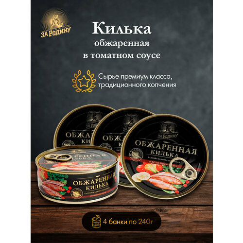 Килька обжаренная в томатном соусе "За Родину", 4 шт. по 240 г