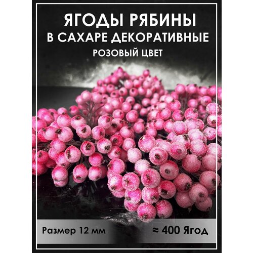 Ягоды рябины декоративные розовые в сахаре на ветке искусственные украшения на елку новый год для декора веточка