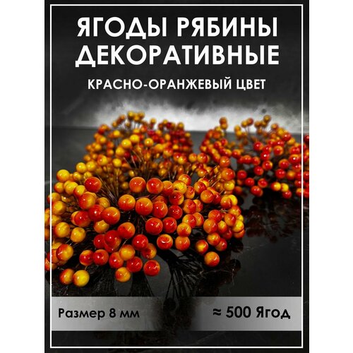 Ягоды рябины декоративные красно-оранжевые на ветке искусственные украшения на елку новый год для декора веточка