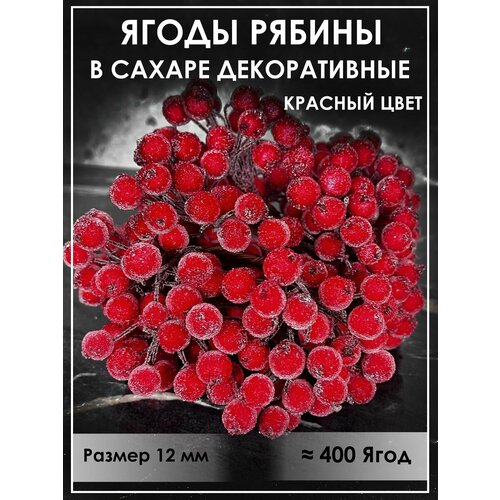 Ягоды рябины декоративные красные в сахаре на ветке искусственные украшения на елку новый год для декора веточка