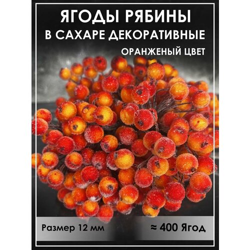 Ягоды рябины декоративные оранжевые в сахаре на ветке искусственные украшения на елку новый год для декора веточка