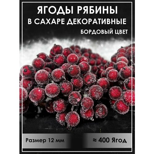 Ягоды рябины декоративные бордовые в сахаре на ветке искусственные украшения на елку новый год для декора веточка