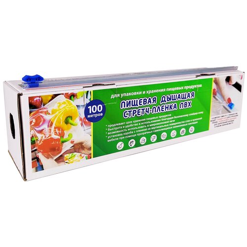Пленка пищевая ПВХ в коробке с ножом 30 см x 100 м 9 мкм, для хранения продуктов, для обертывания