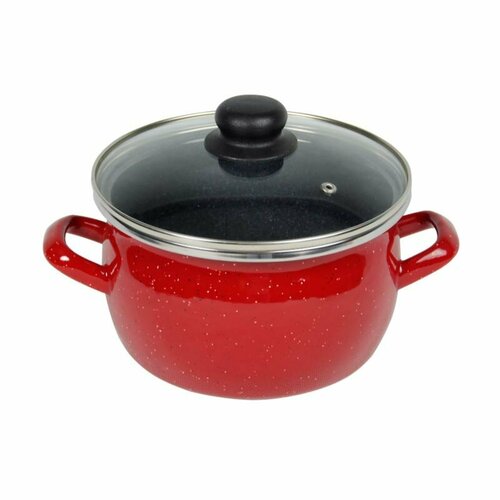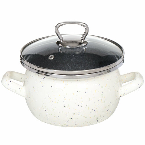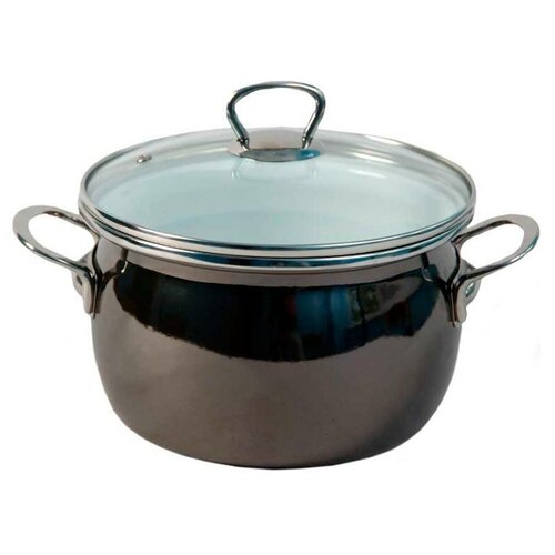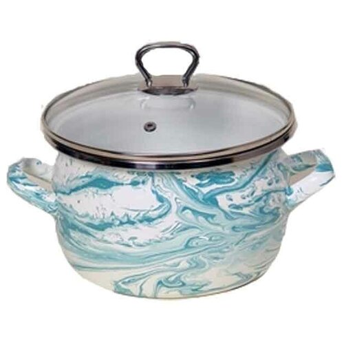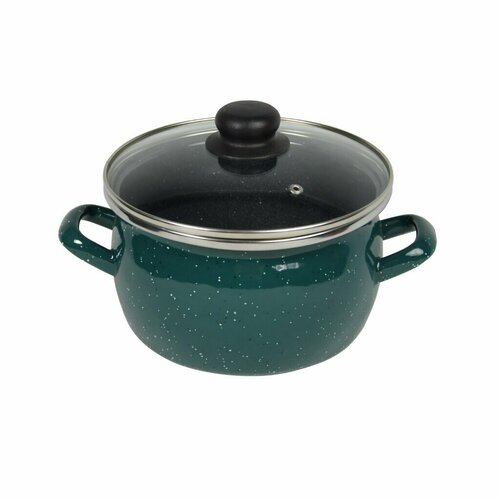 Кастрюля эмалированная сталь, 2.5 л, с крышкой, крышка стекло, сферическая, Сантэкс, Малахит, 1-2425112, индукция