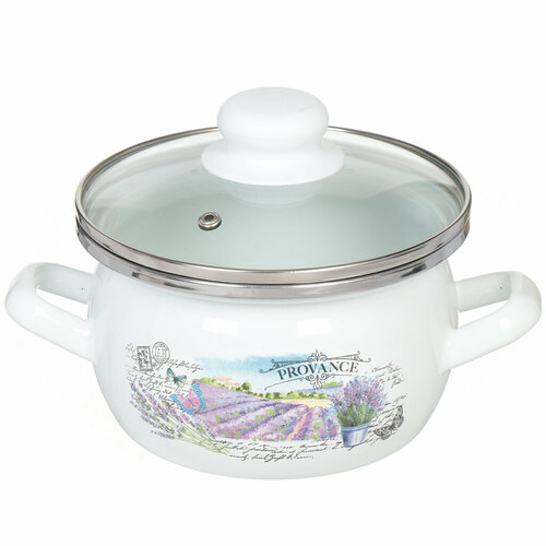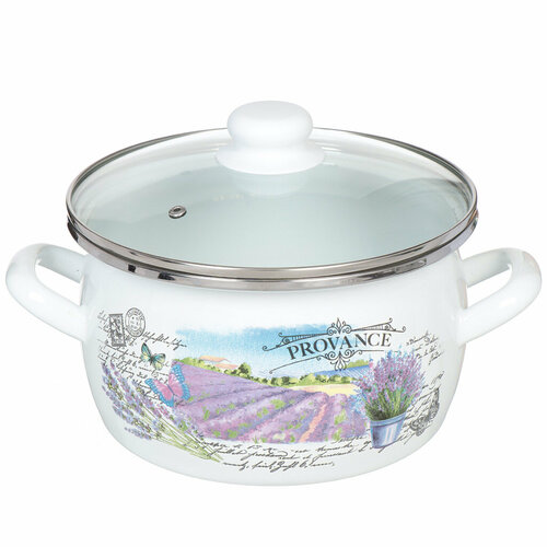 Кастрюля сталь, эмалированное покрытие, 1.5 л, с крышкой, Сантэкс, Лаванда, 1-2415112