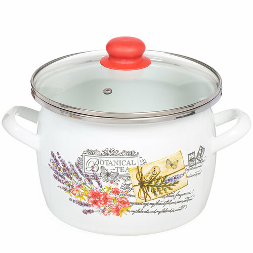 Кастрюля сталь, эмалированное покрытие, 5 л, с крышкой, Сантэкс, Прованс, 1-2450112