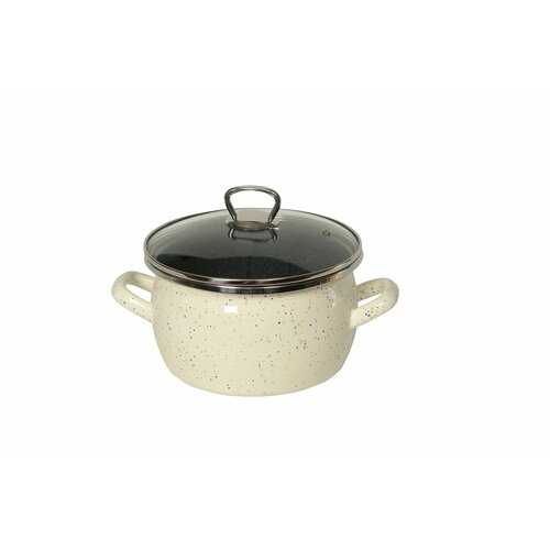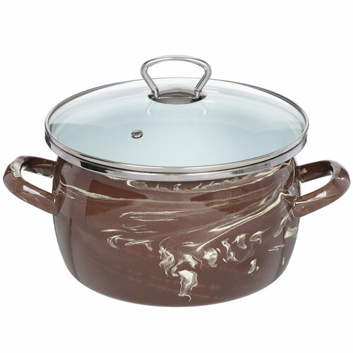 Кастрюля сталь, эмалированное покрытие, 4 л, с крышкой, Сантэкс, Шейк коричнево-белый, 1-2440111