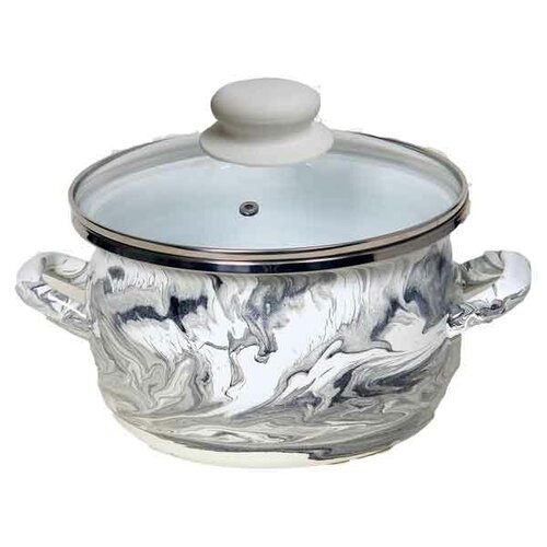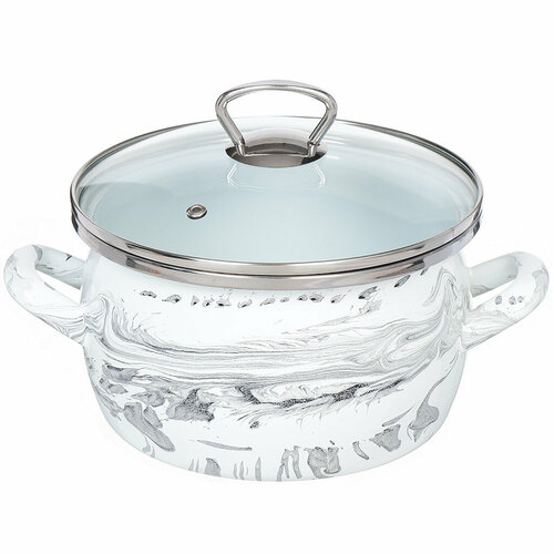 Кастрюля сталь, эмалированное покрытие, 3 л, с крышкой, Сантэкс, Шейк бело-черная, 1-2430111