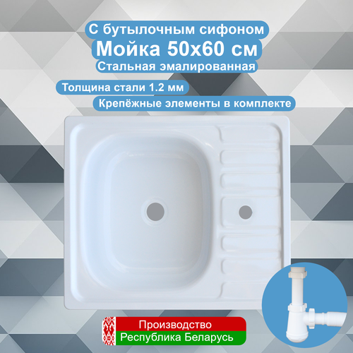 Мойка 50*60 стальная эмалированная с бутылочным сифоном